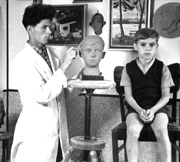 - lernt von Stukkateur Dursy den Umgang mit Gips